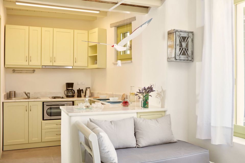 Imagine strolling through the labyrinthine, vaulted passageways of Tripotamos, admiring the white-washed houses and the vibrant flowers that adorn the cozy courtyards. Our Cozy Courtyard Studio captures the essence of this traditional village, offering a peaceful, slow-living home for your Tinos escape.